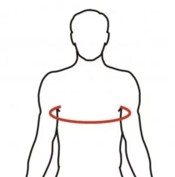 Meet de borstomvang en ga daarbij onder de oksels door.
