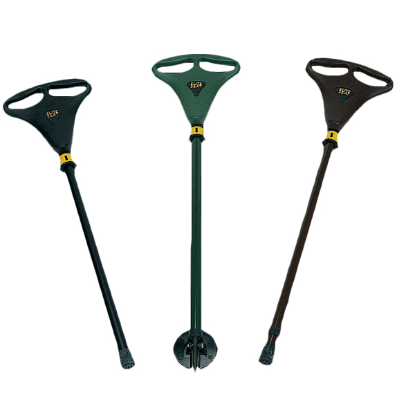 Tracker zitstok/wandelstok met opklapbare groene zitting, groen gecoate stok met punt en wegklapbare plaat. De stok zelf is niet opvouwbaar. De plaat zorgt voor een verhoogde stabiliteit tijdens het zitten. Zowel de zithoogte als de totale lengte is verstelbaar in hoogte, ideaal voor elke gebruiker.